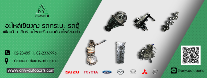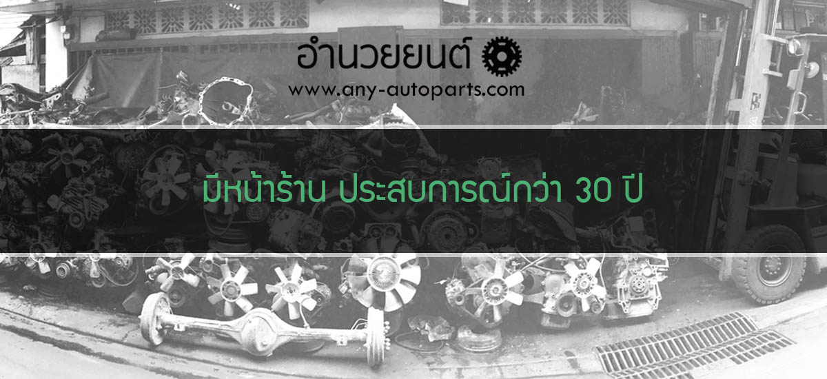 ANY อำนวยยนต์ ผู้จำหน่ายอะไหล่รถกระบะ รถตู้ และรถใหญ่ เชียงกง มือสอง เก่าแท้-ใหม่นำเข้า มากกว่า 1,000 รายการ มีบริการให้คำปรึกษา จัดหาอะไหล่ที่ลูกค้าต้องการ จัดส่งทั่วประเทศ พร้อมทั้งบริการรับประกันสินค้าทุกชิ้น ด้วยประสบการณ์กว่า 30 ปี ทำให้เราเป็นที่ไว้วางใจของลูกค้า ทั้งร้านค้าต่างจังหวัด อู่ซ่อมรถยนต์ และ ผู้ใช้รถเอง